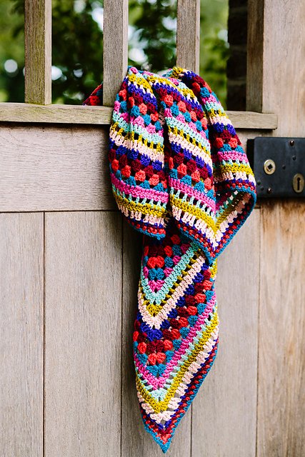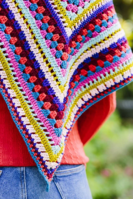The Maite Shawl is a stunning crochet project that combines classic granny-style construction with vibrant modern colorwork. With its relaxing stitches and beautiful stripe sequence, it’s a project that both beginners and experienced crocheters can enjoy.